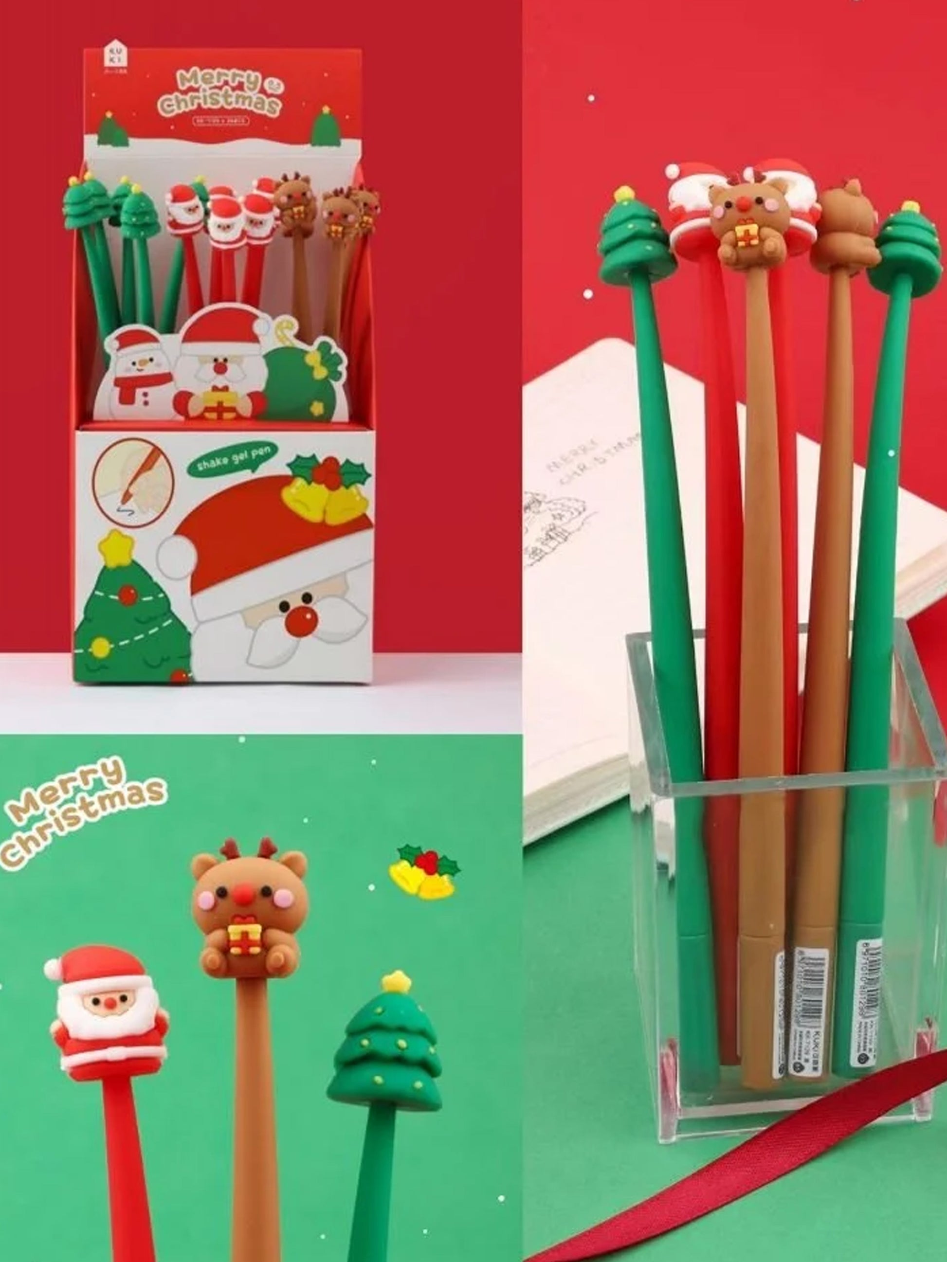 | 4 PCS Cute Christmas Gel Pens: Material: Silicon Outer shell, Ink color: Blue, Length: Approx.22 cm. Christmas Tentacles design cute pens. |